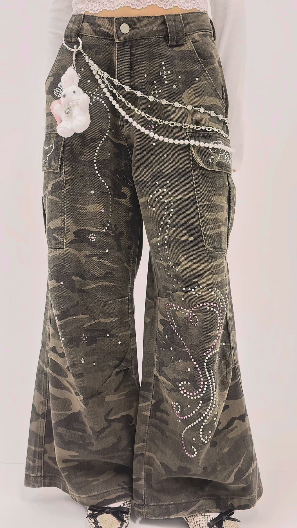 遊び心のあるグラフィックをラインストーンで描いたデザイン。