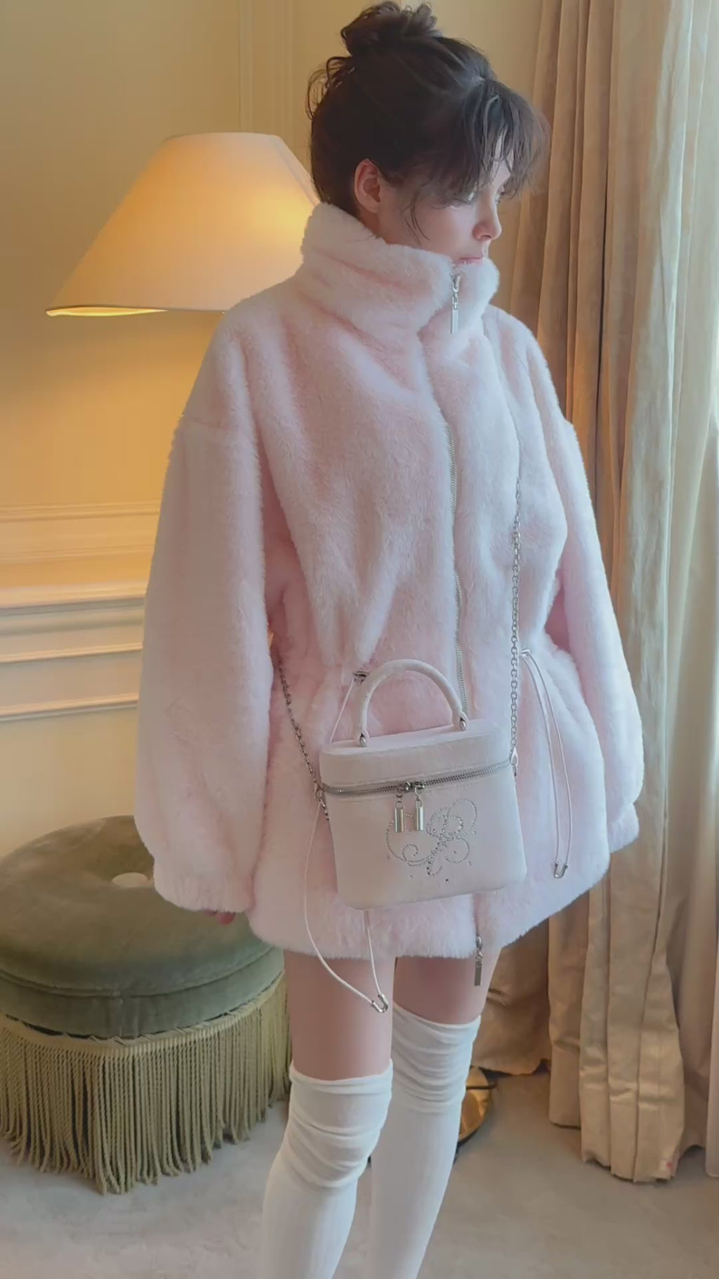 ふっくらとしたボリューム感が魅力のフェイクファーコート。